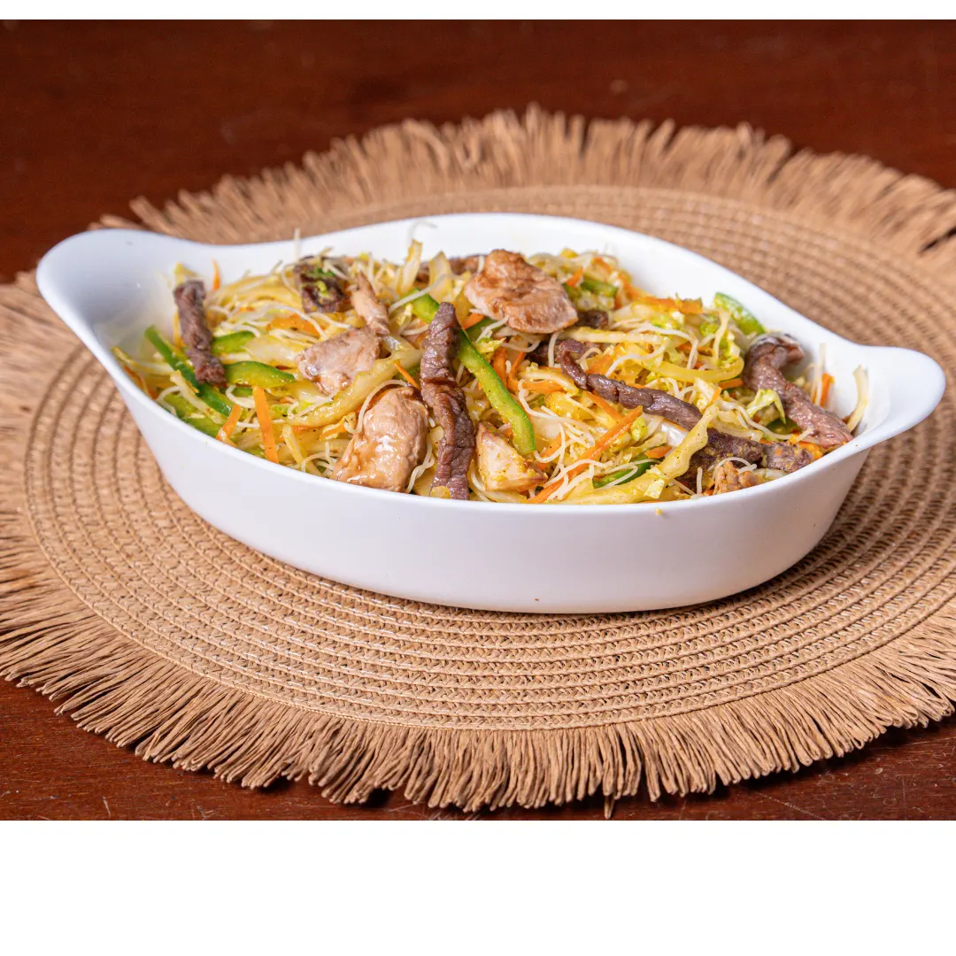 Delicie-se com o autêntico Macarrão Bifum, uma experiência gastronômica que serve duas pessoas. Feito com macarrão de arroz oriental, combina carne magra de primeira, filé de peito de frango selecionado das melhores regiões.